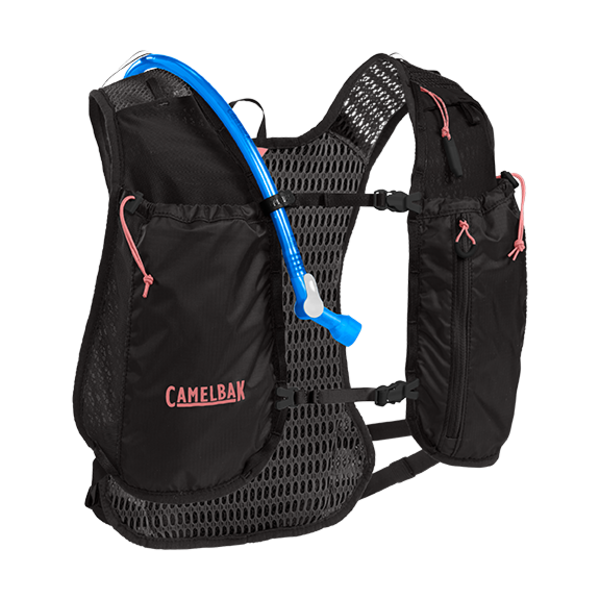 Naisten Circuit -liivi sisältää 1,5 L / 50 oz CRUX™-juomasäiliön, joka antaa 20 % enemmän vettä per siemaus, ja se on kevyt kantaa monien kilometrien lenkin ajan. Erityisesti naisille suunnitellut etupaneelit sisältävät neljä taskua, joihin voi sijoittaa pehmeitä pulloja nesteiden tai varusteiden säilytystä varten.